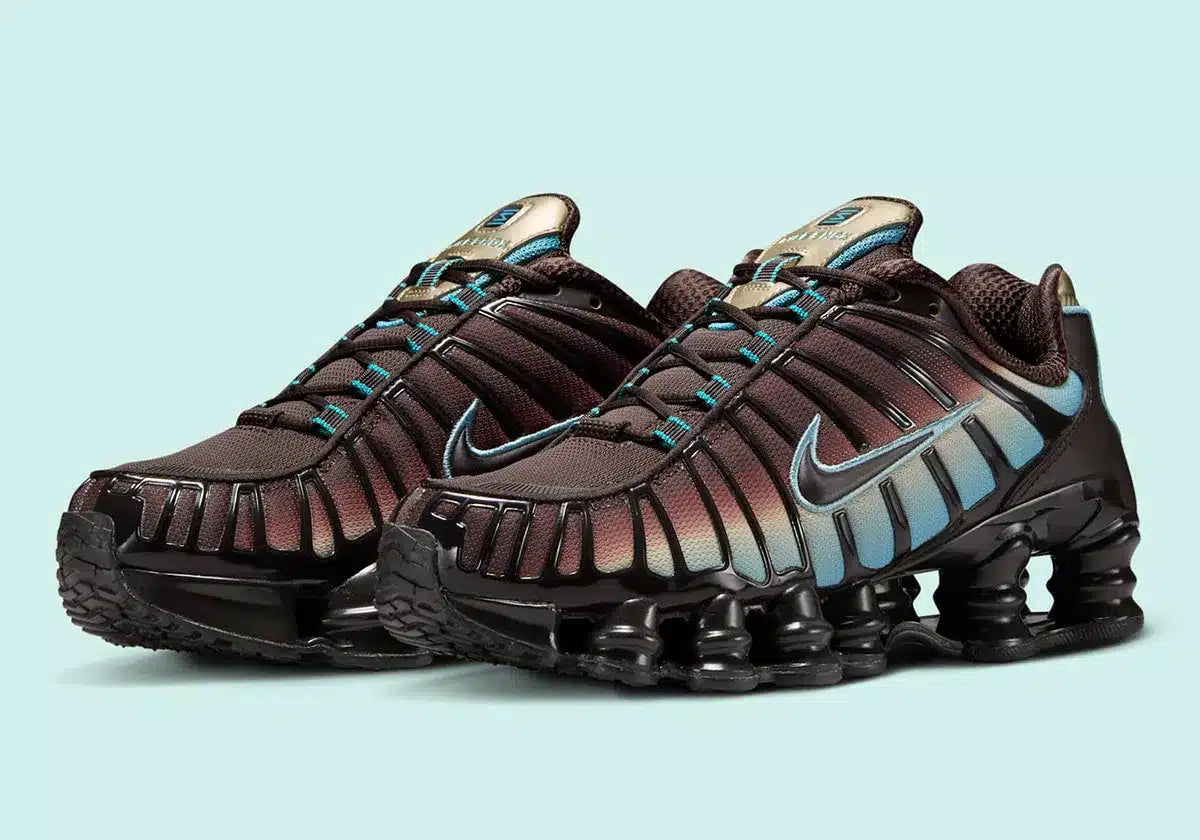 Com o Nike Shox TL totalmente aceito como um tênis da moda, a Nike está começando a experimentar cores focadas em estilo de vida para correr ao lado dos habituais vermelhos, azuis-escuros e brancos focados em esporte. 2025 será um importante campo de testes para os estilos nike Shox em cores retrô de corrida, começando com este par marrom/azul/bege recém-revelado que sinaliza a natureza.
